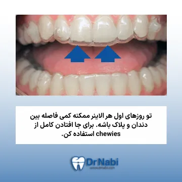 نکته مهم: وقتی یه الاینر جدید رو شروع میکنی، طبیعیه که اولش کامل روی دندونها نشینه. اینجاست که chewies به کارت میاد.