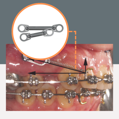 فنرها بین براکتها قرار میگیرند و به جابجایی دندانها در صورت نیاز به باز کردن فاصله یا بستن فضا بین دندانها کمک میکنند.