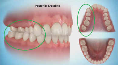 کراس بایت خلفی نیزدر نتیجه باریک شدن قوس فک بالا ممکن است ایجاد شود. کراس بایت زمانی است که برخی از دندان های بالایی در داخل دندان های پایینی قرار می گیرند. کراس بایت نه تنها می تواند منجر به درد فک و سایش مینا شود، بلکه بیماران اغلب با جابجایی فک خود به یک طرف آن را جبران می کنند که می تواند باعث انحراف فک نیز شود.
