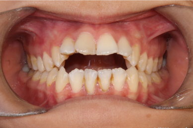 - اپن بایت، زمانی که دندانهای جلویی فک بالا و پایین هیچ همپوشانی ندارند و بین آنها فاصله است. معمولا بیماران اپن بایت با مشکل گاز گرفتن میوه ها و خوراکیها مواجه هستند.