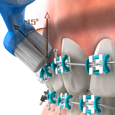 پیشنهاد میکنیم از مسواک نرم و خمیر دندان حاوی فلوراید استفاده نمائید. با نیروی ملایم و با آرامش مسواک بزنید. مسواک را با زاویه 45 درجه روی لثه بگذارید تا احساس کنید که موهای مسواک زیر لثه رفتهاند و به آن حرکت چرخشی بدهید تا تمام سطوح دندانها تمیز گردد. با مسواک روی هر سطح دندان و براکت را 10 بار بکشید به زیر براکتها و روی براکتها دقت خاص نمائید. بهتر است در روز 4 بار مسواک بزنید بعد از صبحانه، بعد از نهار (یا به محض رسیدن از مدرسه)، بعد از شام و قبل از خواب.