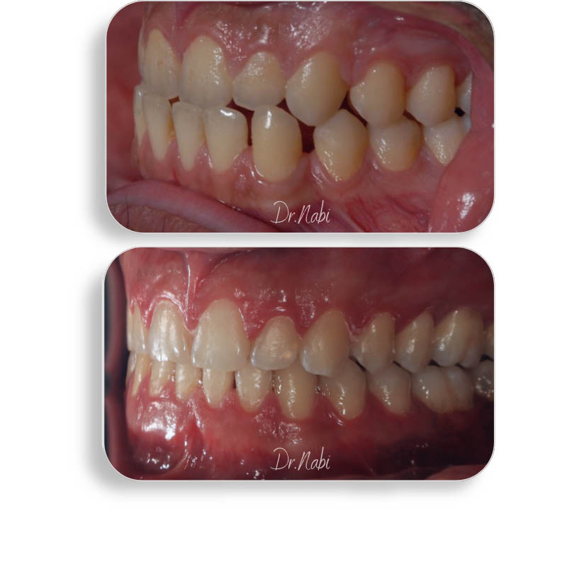 بیمار آقای 18 ساله ای هستند که به جهت جلوزذدگی فک پایین و فواصل بین دندانی مراجعه کردند. درمان با ارتودنسی نامرئی انجام شد و با نتیجه ای که ملاحظه می کنید به پایان رسید.