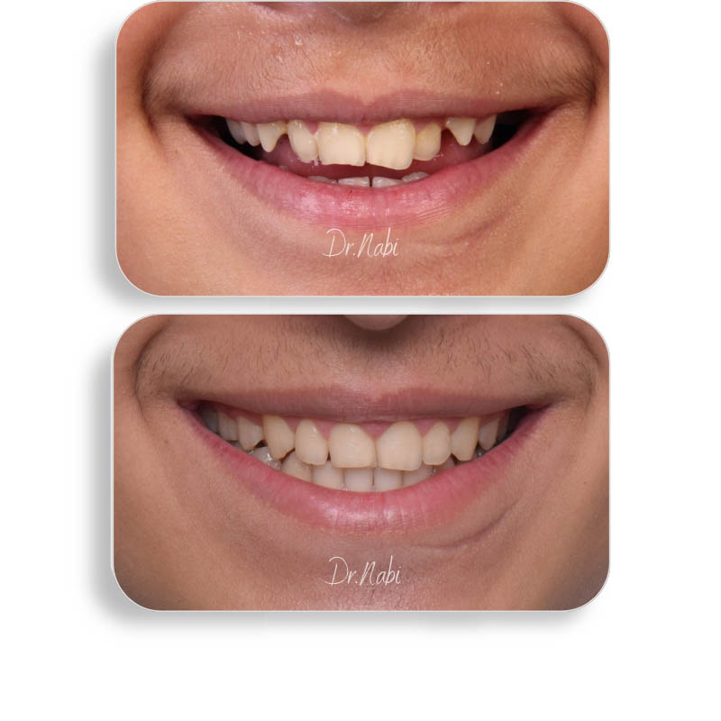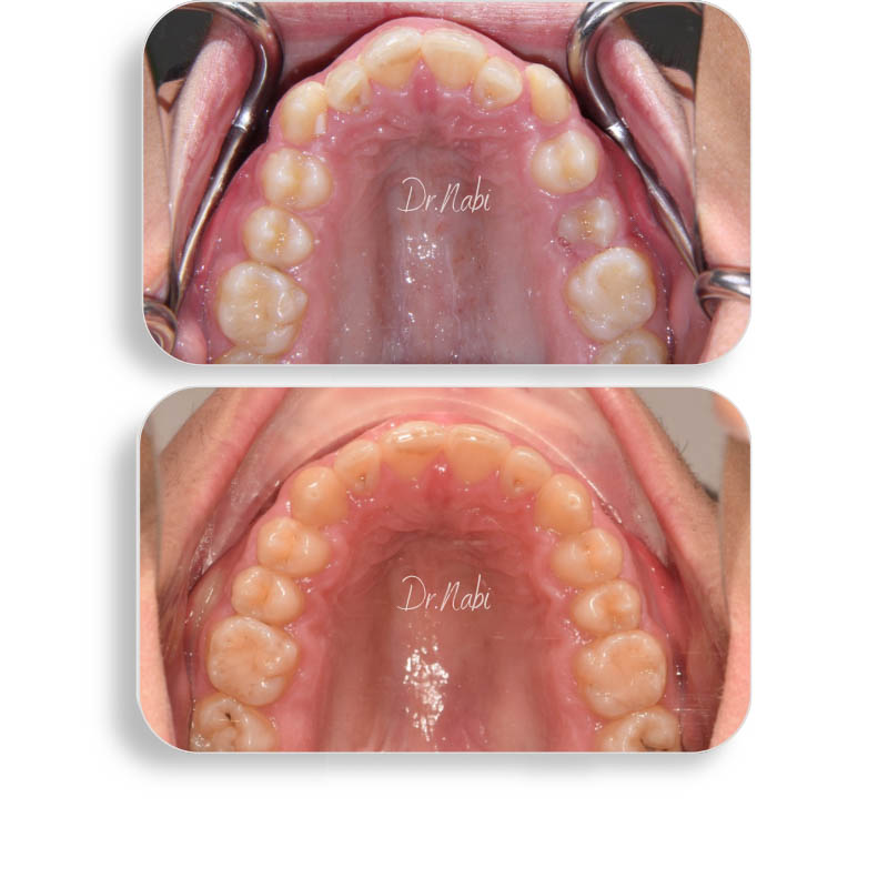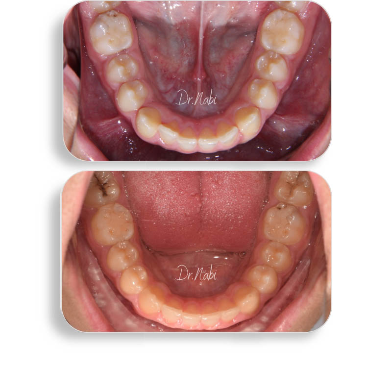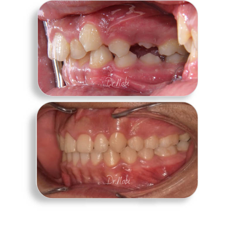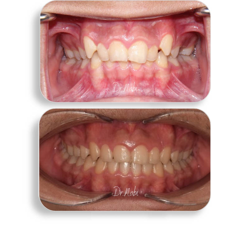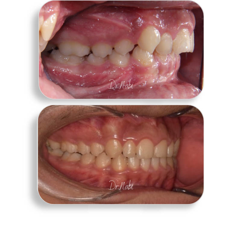 بیمار در سن 12 سالگی مراجعه کردند که ابتدا با درمان فانکشنال فک پایین رشد داده شد و پس از آن با ارتودنسی ثابت درمان پایان یافت.