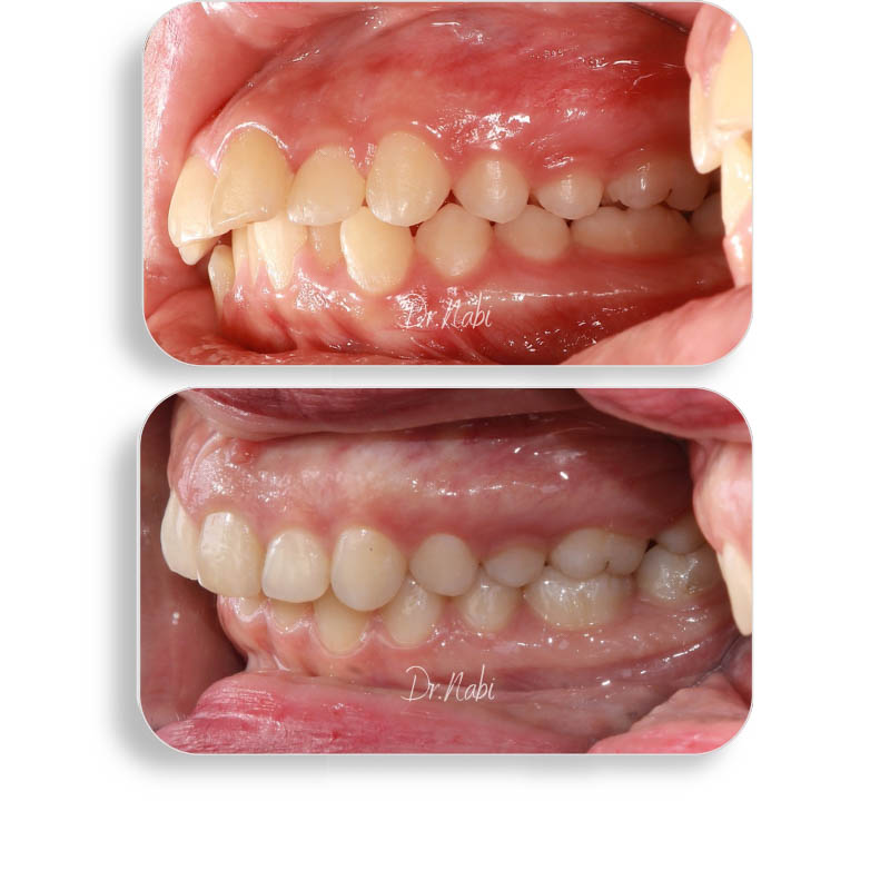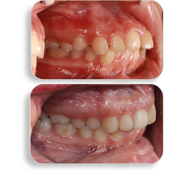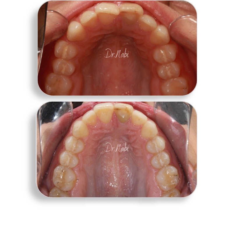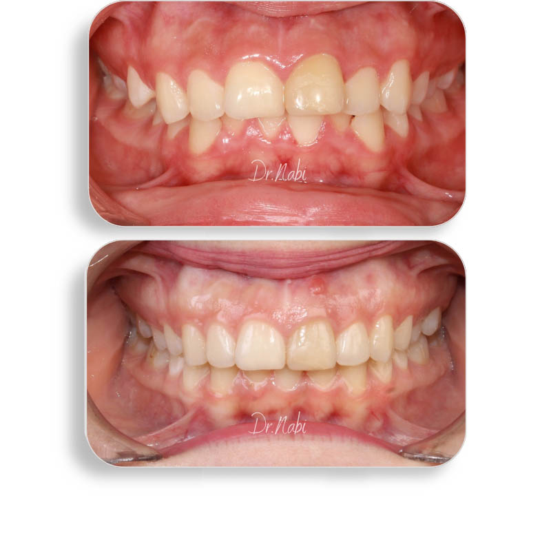 کیس به دلیل نامرتی و دندان سیزربایت مراجعه کرده بودند که با درمان ارتودنسی شفاف به این نتیجه رسیدیم.